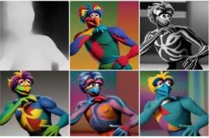 /render /depth:bruce A strange colorful cartoon Muppet <level4>